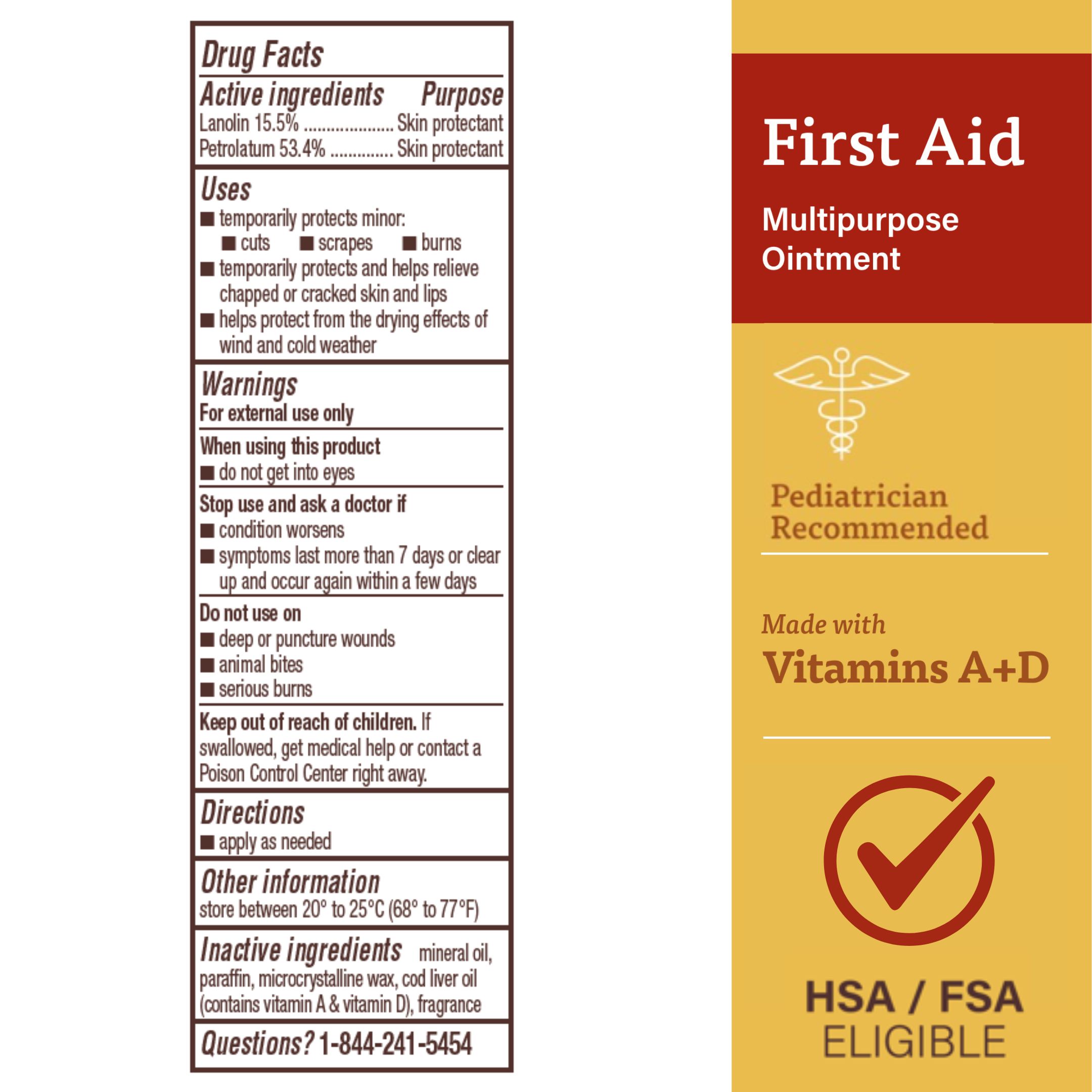 From a brand trusted for over 80 years, A+D First Aid Wound Healing Ointment provides gentle and effective solutions to protect your skin. Different from cream and lotion, this ointment forms a thick, protective barrier to help protect your cracked feet and hands and helps soothe dry skin. It is even useful during cold weather to help protect skin, face and lips from drying effects of wind and cold weather. The healing ointment also helps protect minor cuts, scrapes and burns. A+D First Aid Ointment is a smart addition to your collection of dry heels treatment and skincare products. Use as directed.